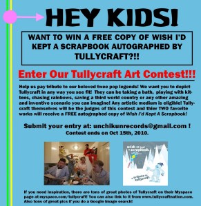 How artistic are you? Unchikun Records wants to know and they are holding a contest to win a free autographed copy of the Tullycraft tribute CD: Wish I’d Kept A Scrapbook. Check out the details here.